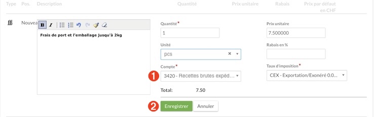 Cliquer sur Enregistrer➋ pour terminer l’insertion des frais de port et d’expédition.